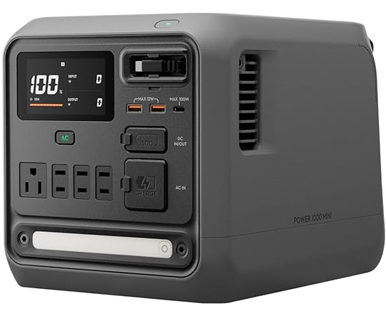1000Whの大容量バッテリーながら、軽量でコンパクト設計。キャンプでのノートパソコン充電やドローン充電、防災時の給電など、様々な用途に対応できるスペックです。